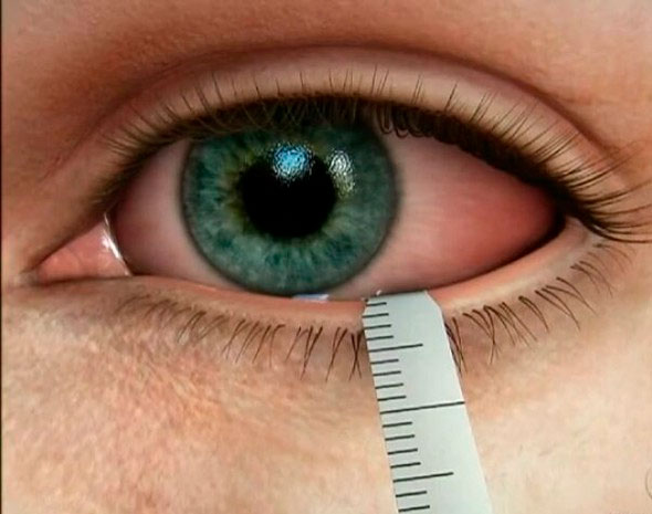 O exame acontece com o auxílio do corante Rosa Bengala, que é aplicado nos olhos antes de o início do teste.